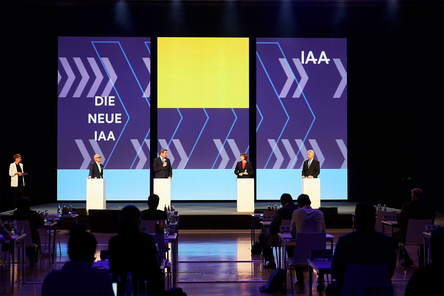 Die weltberühmte Automobilmesse IAA zieht an einen neuen Standort: Ab 2021 heißt es Servus München! Mit dem Stadtwechsel erfolgt auch eine konzeptionelle Neuausrichtung der IAA. Um das neue Konzept gebührend vorzustellen, inszeniert StudioNOW ein Hybrid-Event der besonderen Art. 50 Presse- und Wirtschaftsvertreter werden unter den neuen strengen Hygienerichtlinien nach COVID-19 eingeladen, im parallel laufenden Live-Stream können Zuschauer die Präsentation auch von Zuhause aus verfolgen und per Slido aktiv am Q&A vor Ort teilnehmen.